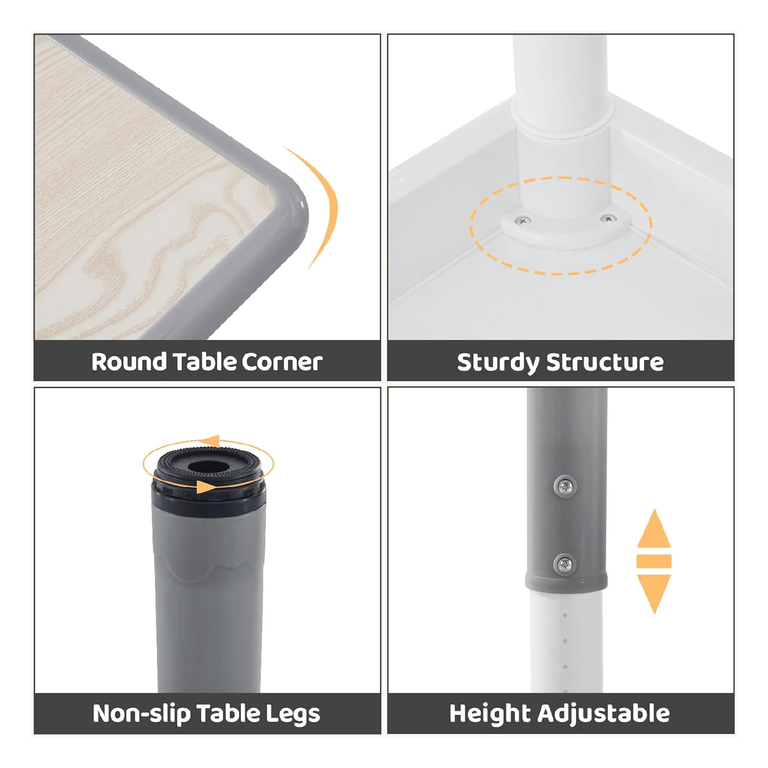 - Rounded edges for safety.