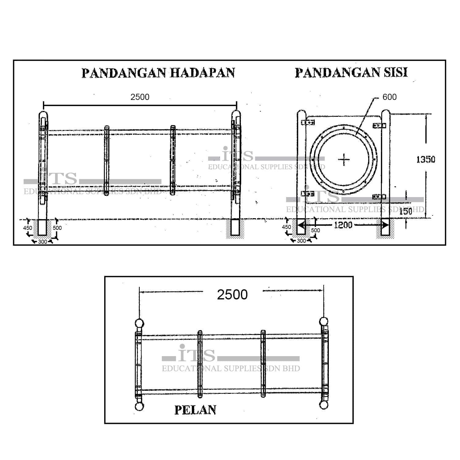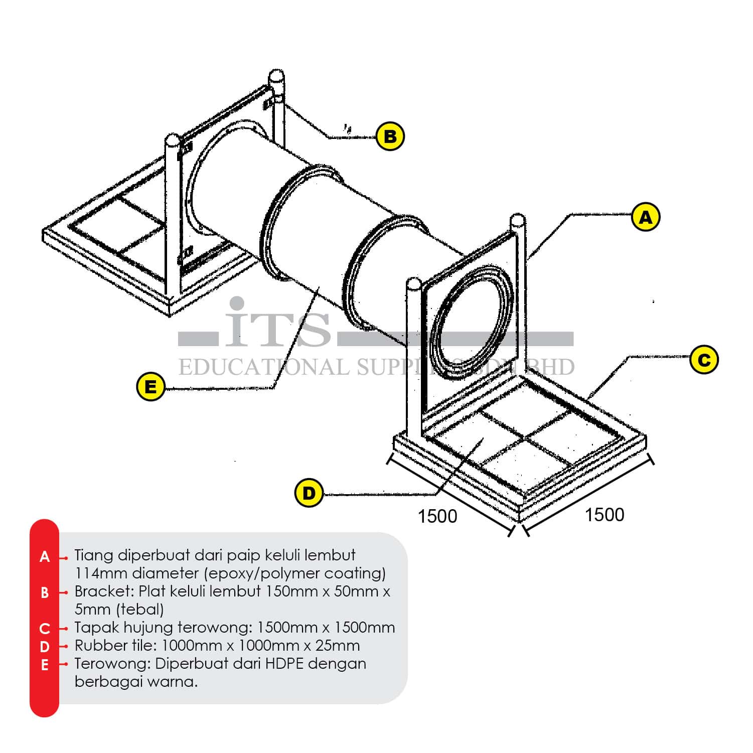 - A – Tiang diperbuat dari paip keluli lembut 114mm diameter (epoxy/polymer coating)